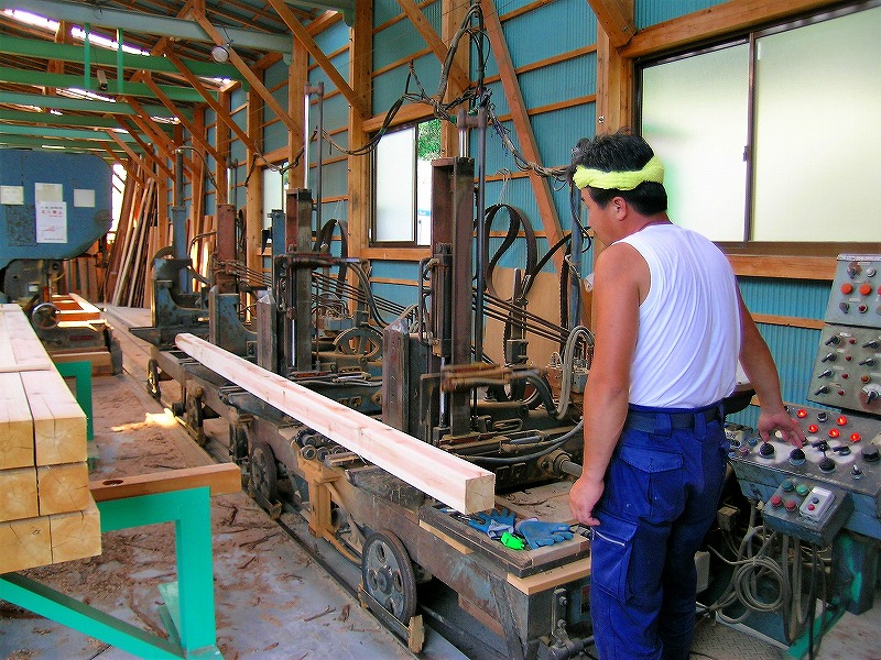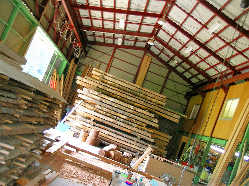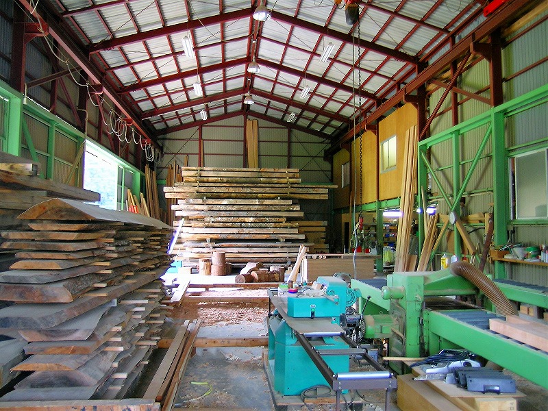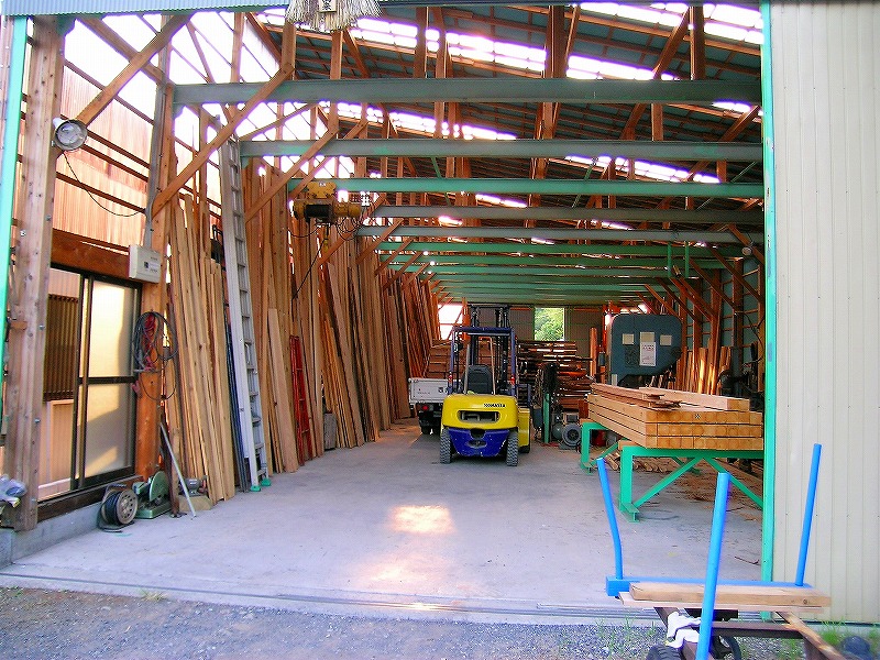 製材所を併設。自分の眼で確かめ製材する。 214.6㎡(65坪)木造一部鉄骨 平成13年2月建設